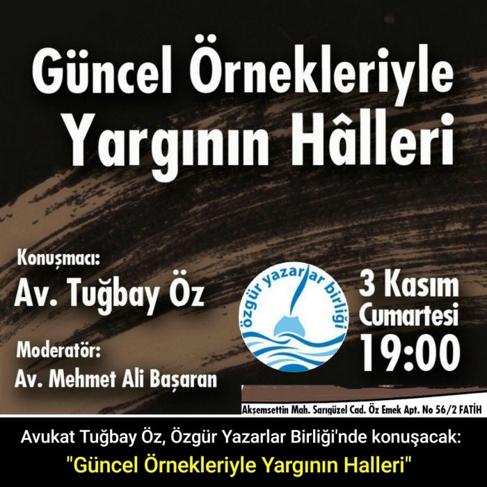 Özgür Yazarlar Birliği tarafından iki haftalık aralıklarla düzenlenen konferans dizisinin bu haftaki konuğu Avukat Tuğbay Öz.